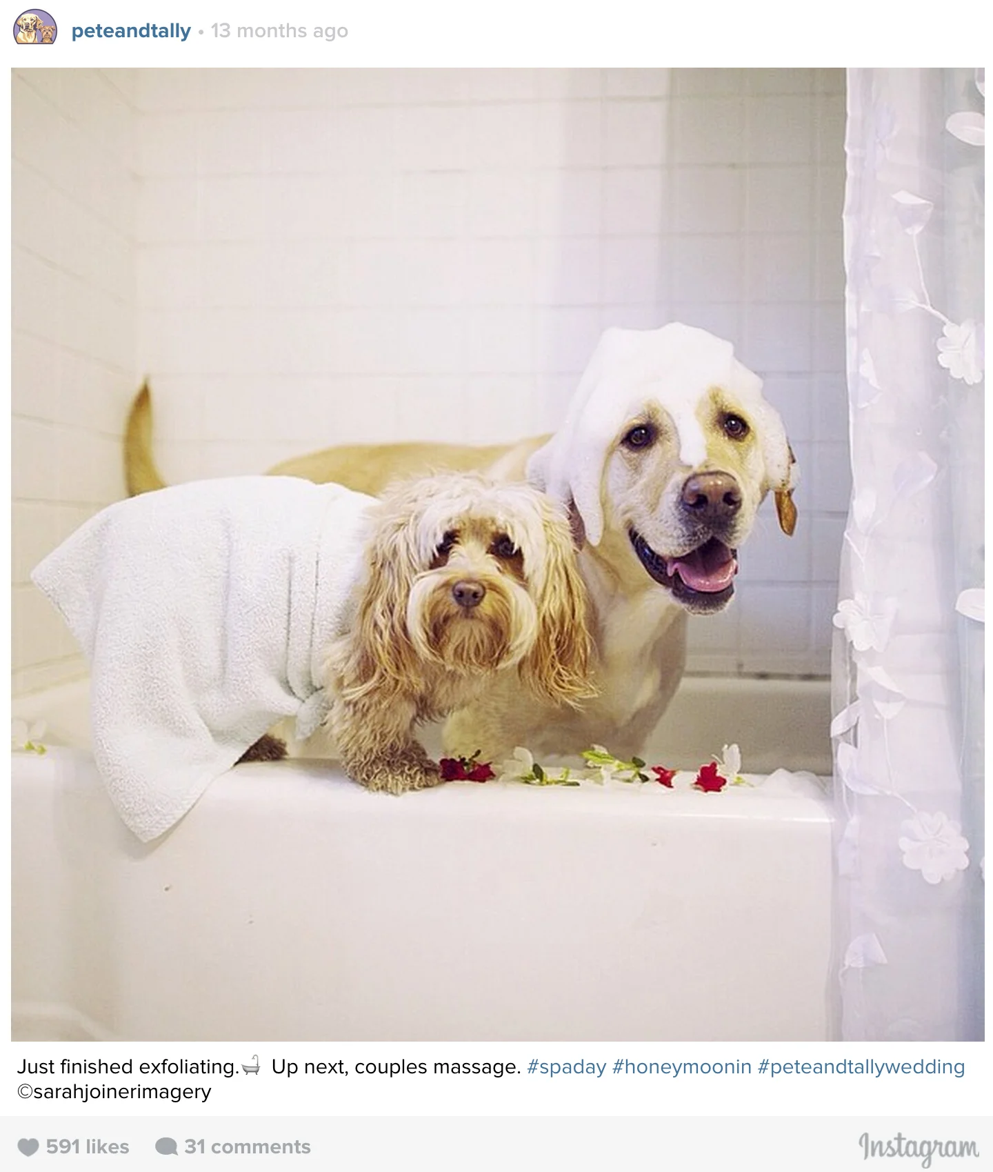 My copywriter partner and I ran an Instagram account focused on the relationship between my two dogs, @PeteandTally. Their social account ended up going semi-viral (in the dog blog world) and continued to grow engagement worldwide.